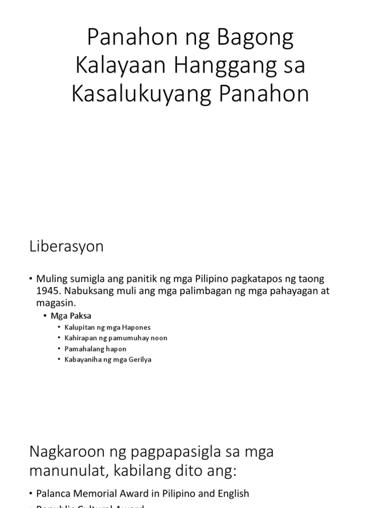 Panahon Ng Bagong Kalayaan Hanggang Sa Kasalukuyang Panahon