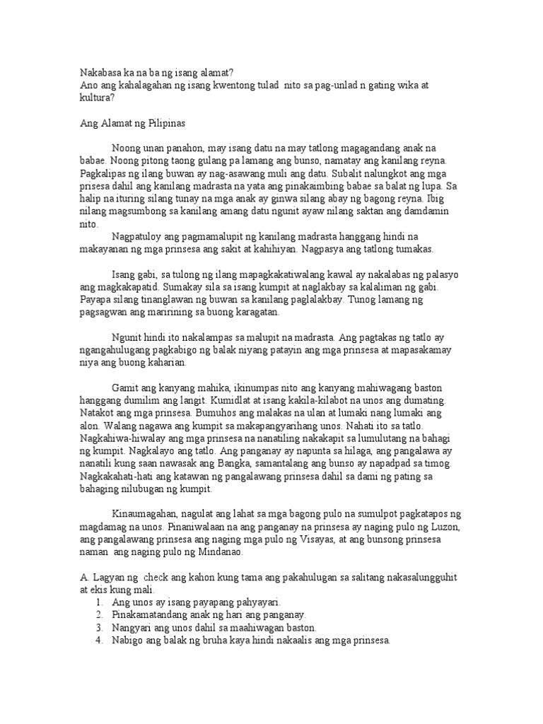 Ang Alamat ng Mindanao. Sa isang malayong pook ng lalawigan don nakatira ang. Gagawa ako ng tao.