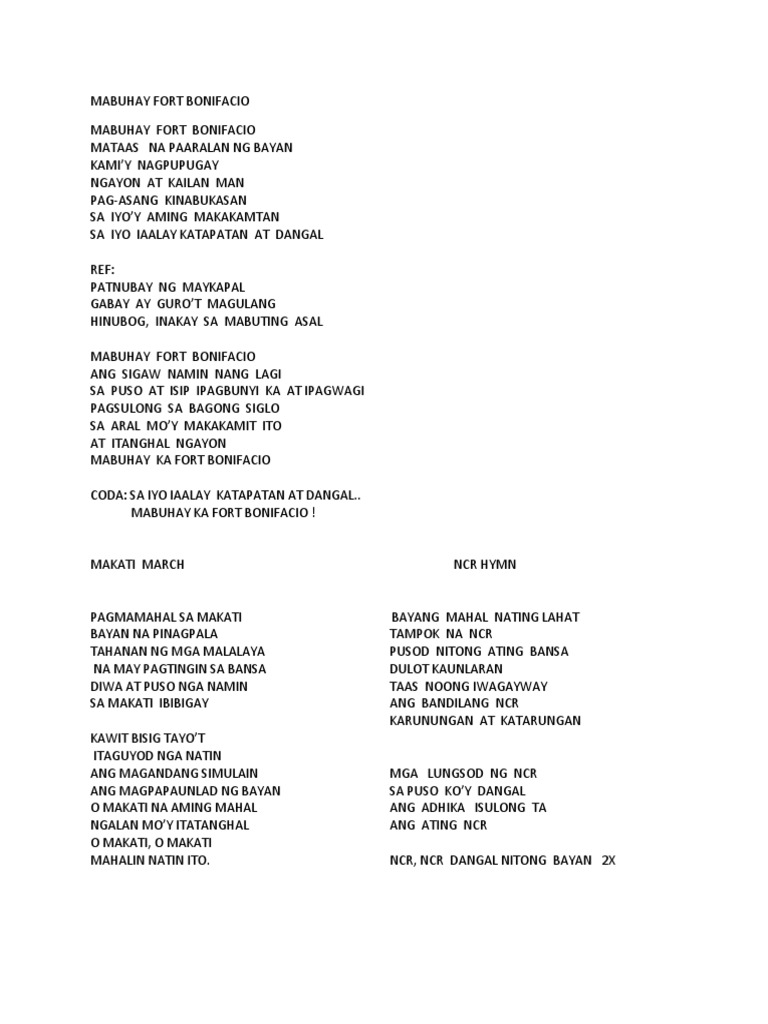 Ang siyang matupad ko. Minsan gusto ko nang iwanan ang larong ito pero hindi nila ako pinapayagan buti nalang biniyayaan ng isang munting supling kaya muling ginanahan. The anthem is not to be confused with Awit sa Paglikha ng Bagong.