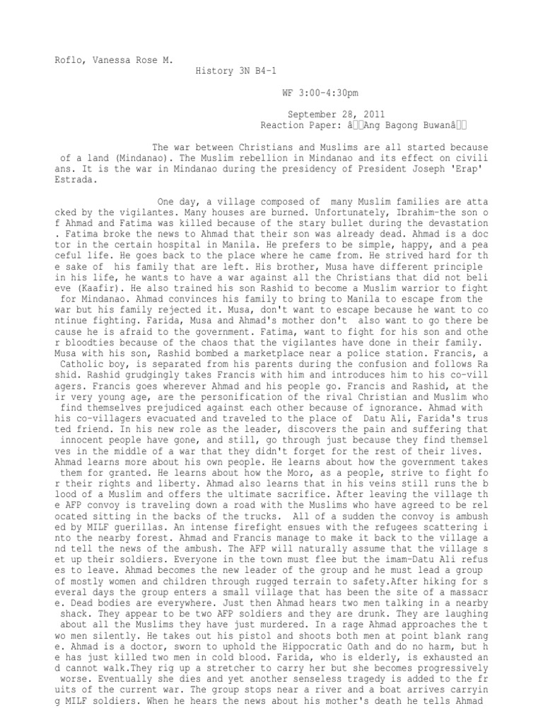 Reaction Paper Ang Bagong Buwan Violence Unrest