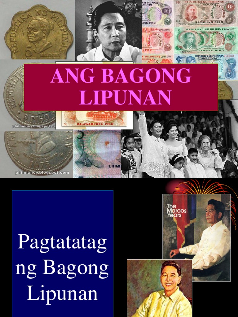 Martsa ng Bagong Lipunan was a Filipino patriotic song during the presidency of Ferdinand MarcosThe lyrics were written by Levi Celerio and the music was composed by Felipe Padilla de Len in 1973. Peace and Order Kapayapaan Land Reform Reporma sa Lupa Economic Reform Repormang Pangkabuhayan Development of Moral Values Paglinang ng kahalagahang Pantao Government Reforms Repormang Pamahalaan Educational Reform Repormang Pampaaralan Social Reform Repormang Panlipunan Ipinatupad sa mga paaralan sa. 1932013 Uri ng dula sa panahon ng hapon.